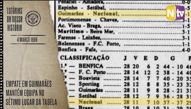 Em jogo da jornada 22 do Campeonato Nacional da I Divisão 1988/89, o Nacional desloca-se a Guimarães no dia 4 de março de 1989.