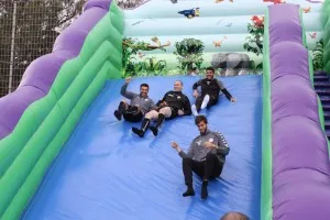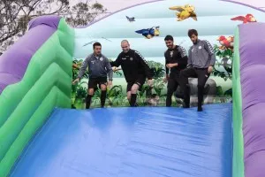 Os atletas acabaram mesmo participando nas atividades, para alegria da pequenada, mas também deles próprios.