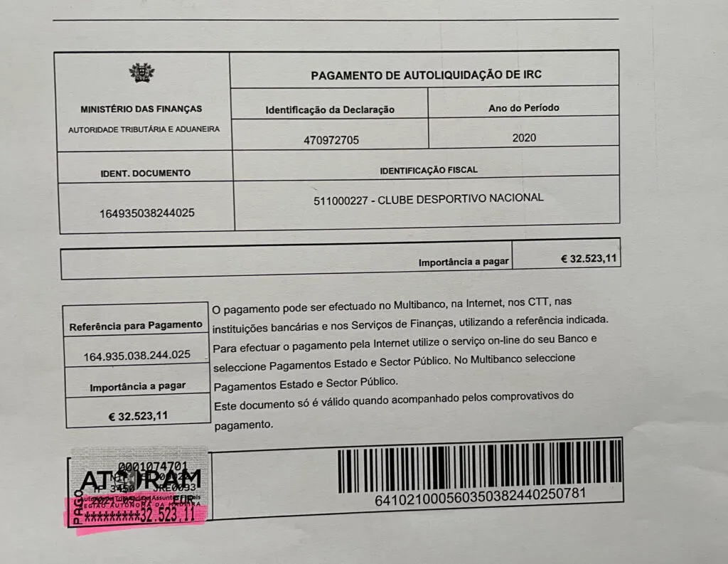 Ainda assim as contas apresentam um resultado fiscal positivo de 291.594,23€, ditando um pagamento de IRC de 32.532,11€, conforme comprovativo abaixo.