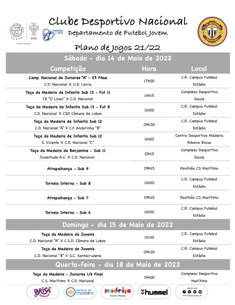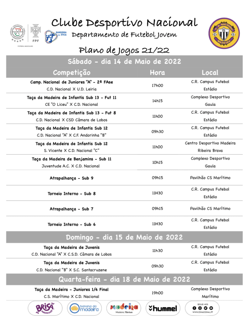 As várias equipas de Futebol Formação do nosso Clube disputam este fim-de-semana mais uma ronda da Taça da Madeira.