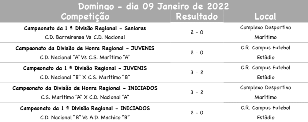 Cumpriu-se este domingo mais uma jornada dos campeonatos regionais do futebol de formação, com as equipas do CD Nacional a averbarem os seguintes resultados: