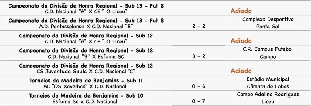Cumpriu-se hoje mais uma jornada dos campeonatos regionais do futebol de formação, com as equipas do CD Nacional a averbarem os seguintes resultados: