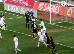 Em cima do minuto 90 um alivio deficiente da defesa do Nacional permitiu a João Real fazer o empate.
