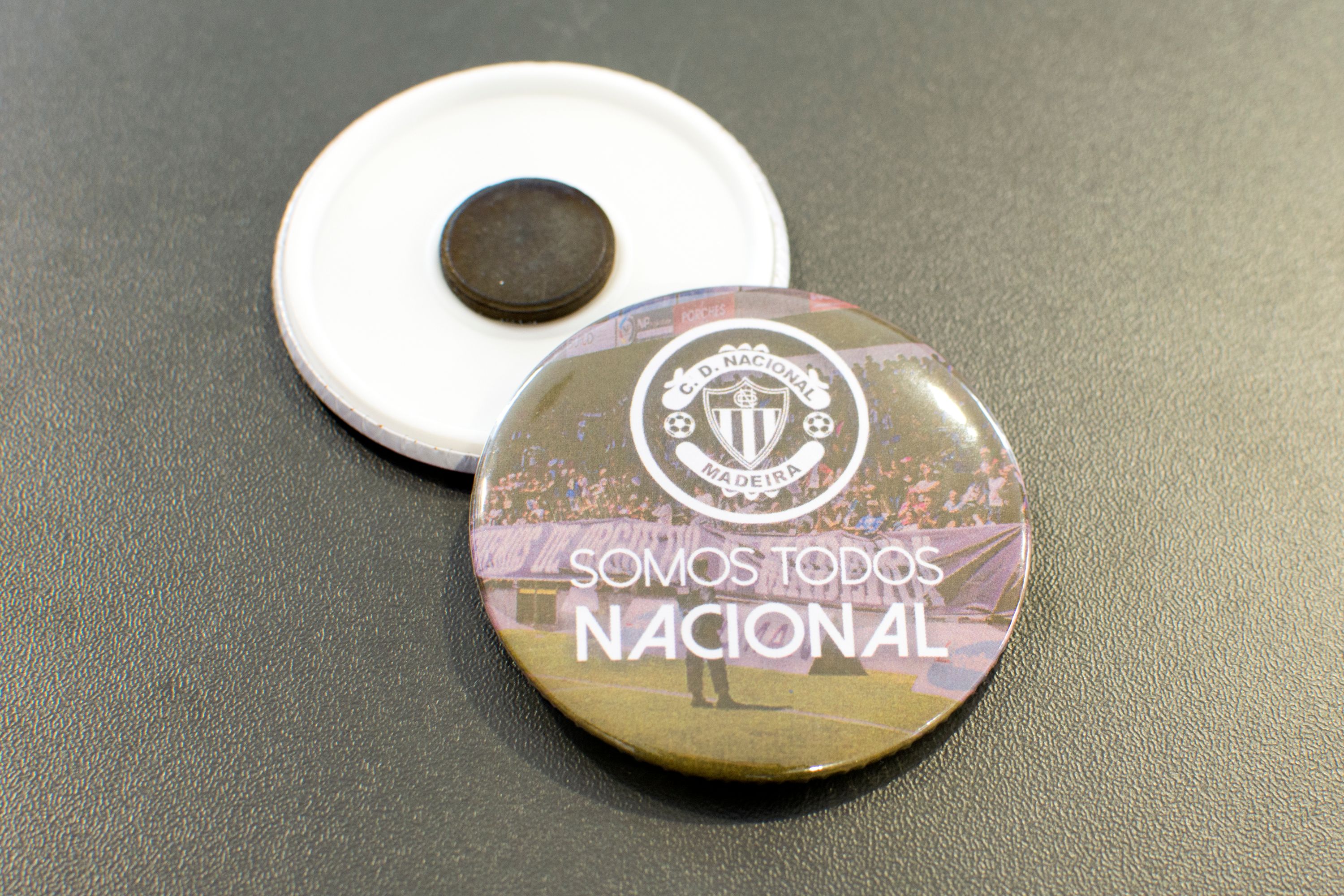 • Pin magnético com slogan ‘Somos Todos Nacional’ a cores.