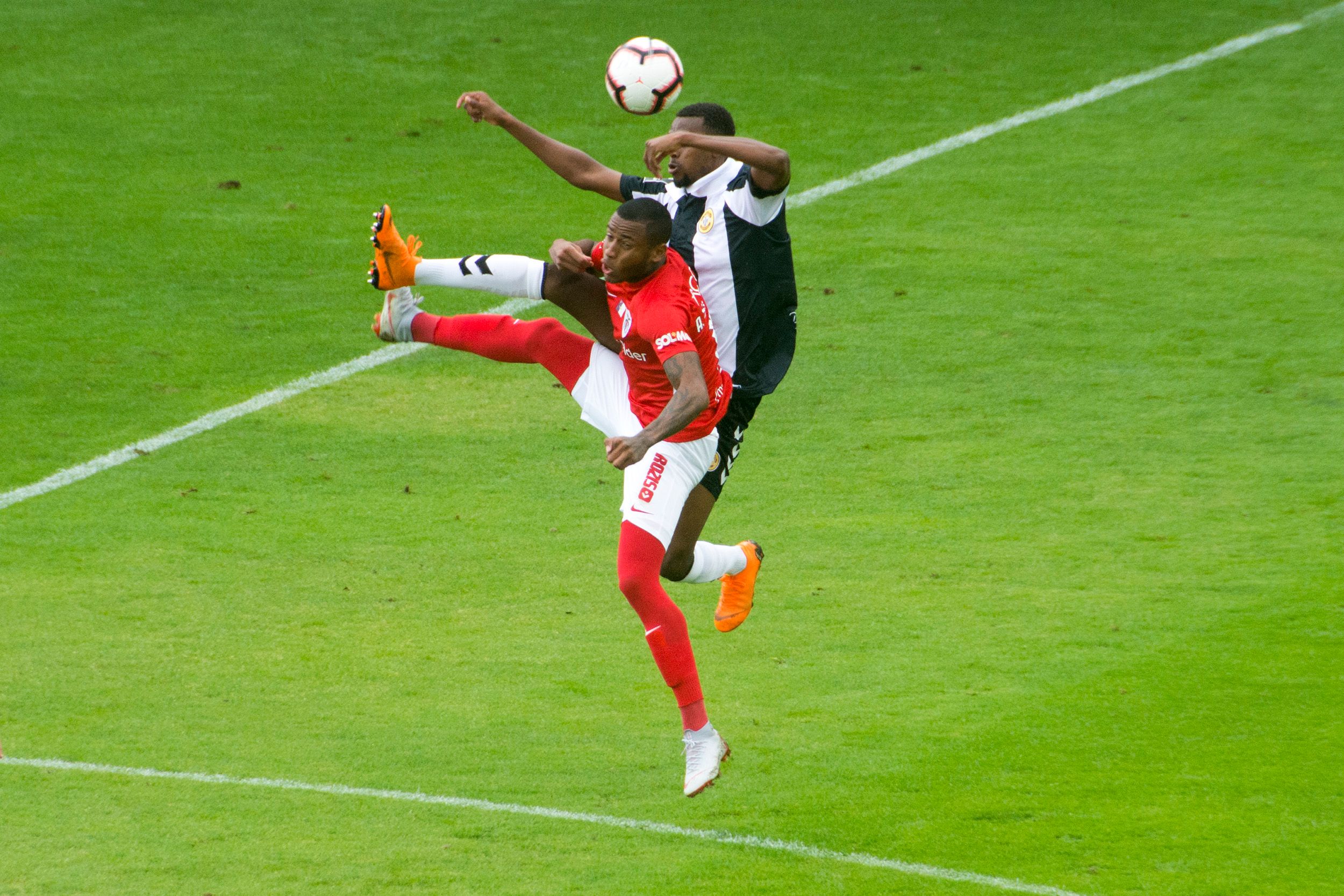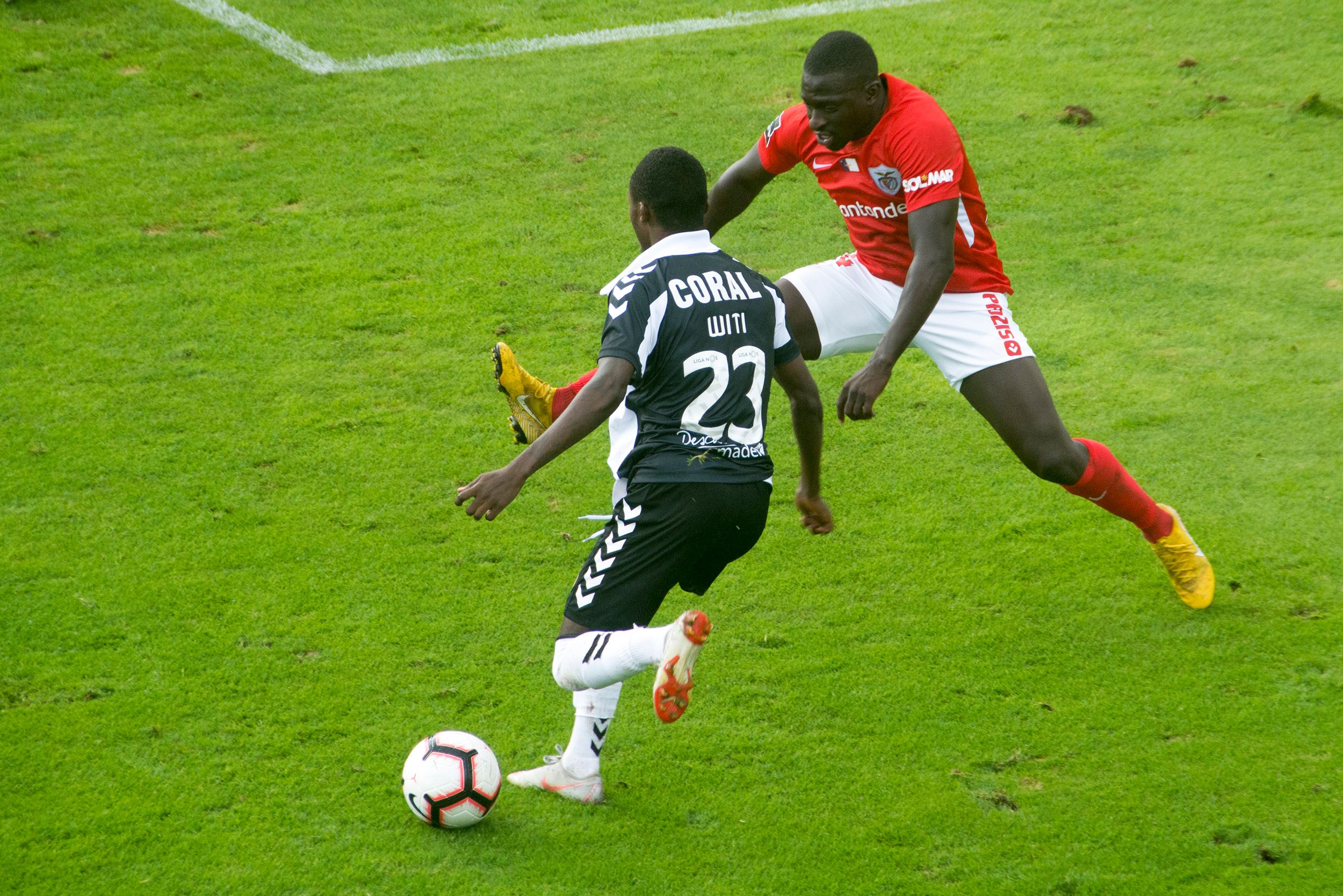 Na resposta. Rochez isola-se, ultrapassa o guarda-redes, mas atirou ao lado.