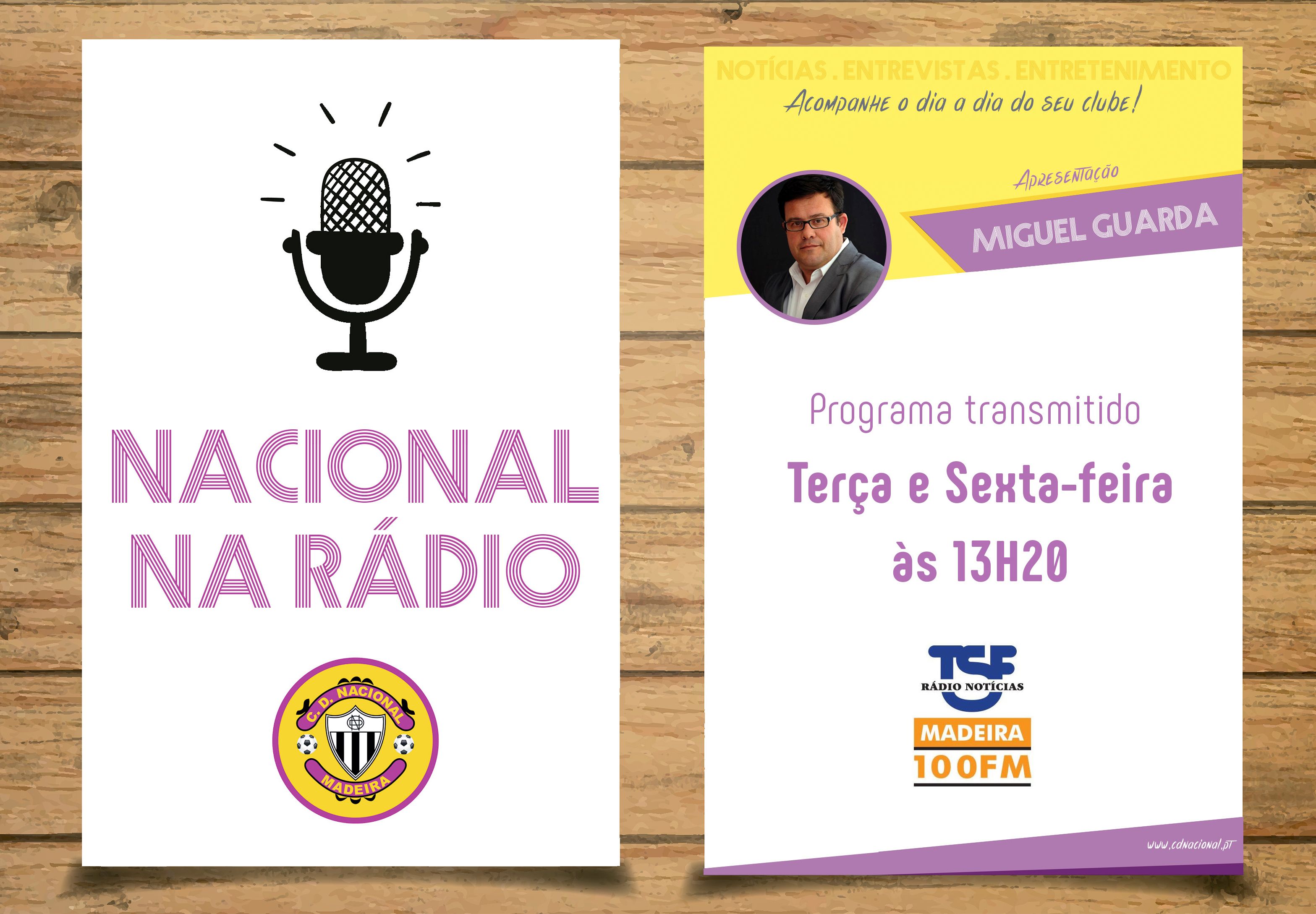 Hoje foi dia de Nacional na Radio. O programa, apresentado pelo jornalista Miguel Guarda, foi para o ar na TSF-Madeira (100.0) a partir das 13h20. Se não teve oportunidade de ouvir em direto, pode escutar aqui.