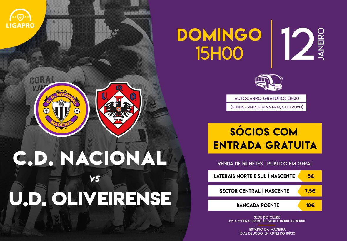 Em jogo da 16ª jornada da LigaPro, a equipa sénior de futebol do CD Nacional recebe esta tarde o Oliveirense.