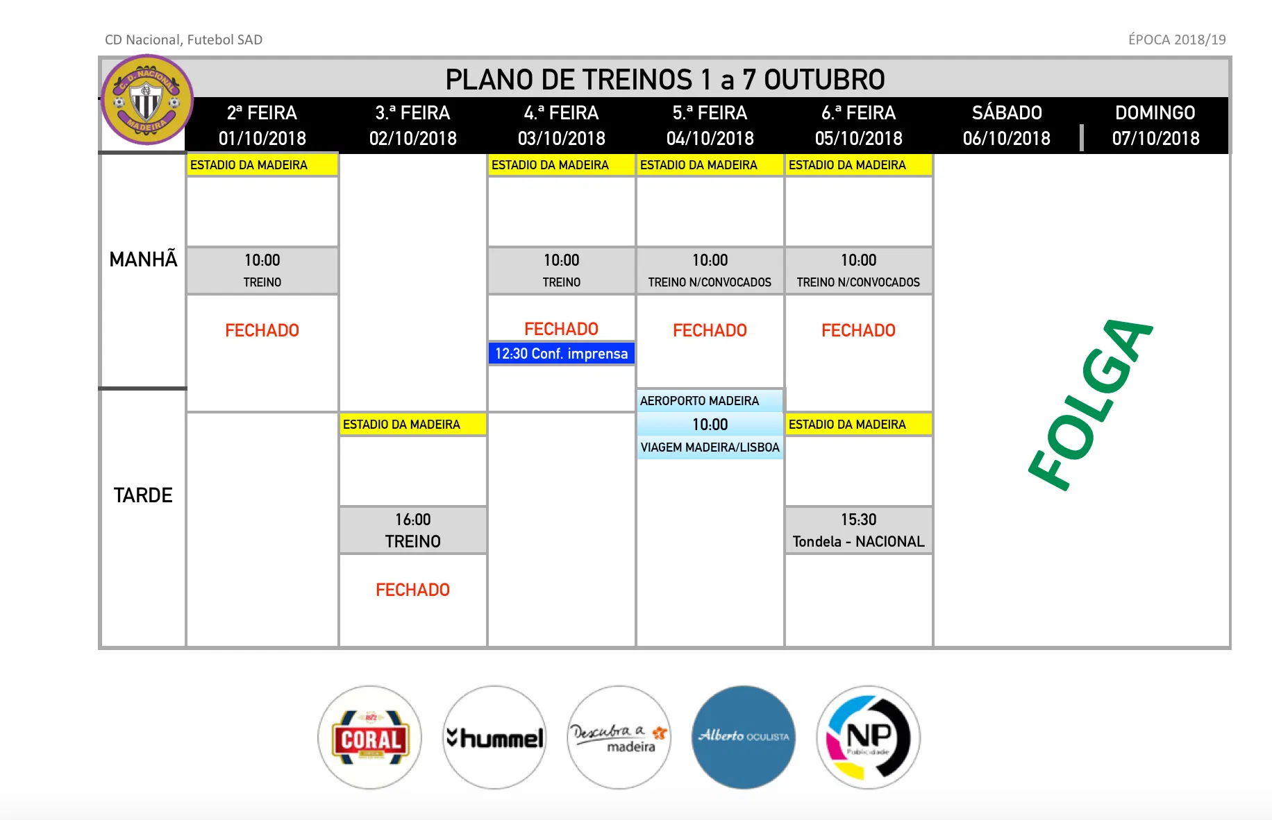 Menos de 24 horas depois do jogo diante do Santa Clara, a equipa sénior de futebol do CD Nacional voltou ao trabalho, começando a preparar o jogo desta 6ª feira, em Tondela. Daniel Guimarães e Camacho, a contas com problemas de ordem física, fizeram trabalho condicionado. Amanhã à tarde a equipa volta ao trabalho.