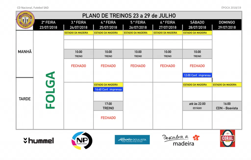 Plano de treinos semana de 23 a 29 de julho