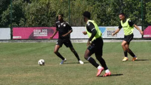Mais uma manhã de trabalho para o plantel sénior de futebol no Open Village hotel, em Guimarães, com a equipa técnica a dar continuidade ao trabalho de organização tática.